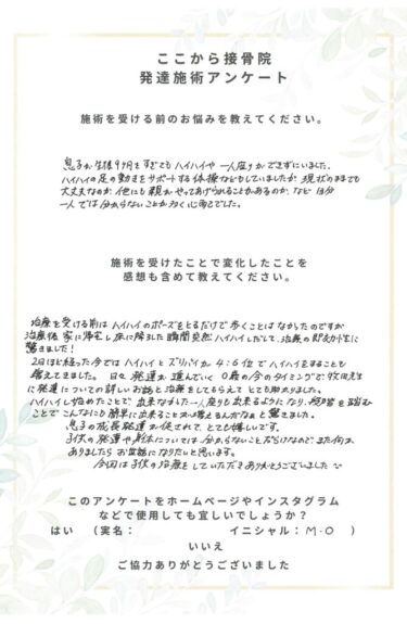 お母様の不安が安心に変わり、お子様の成長を一緒に喜べたことを大変嬉しく思います。